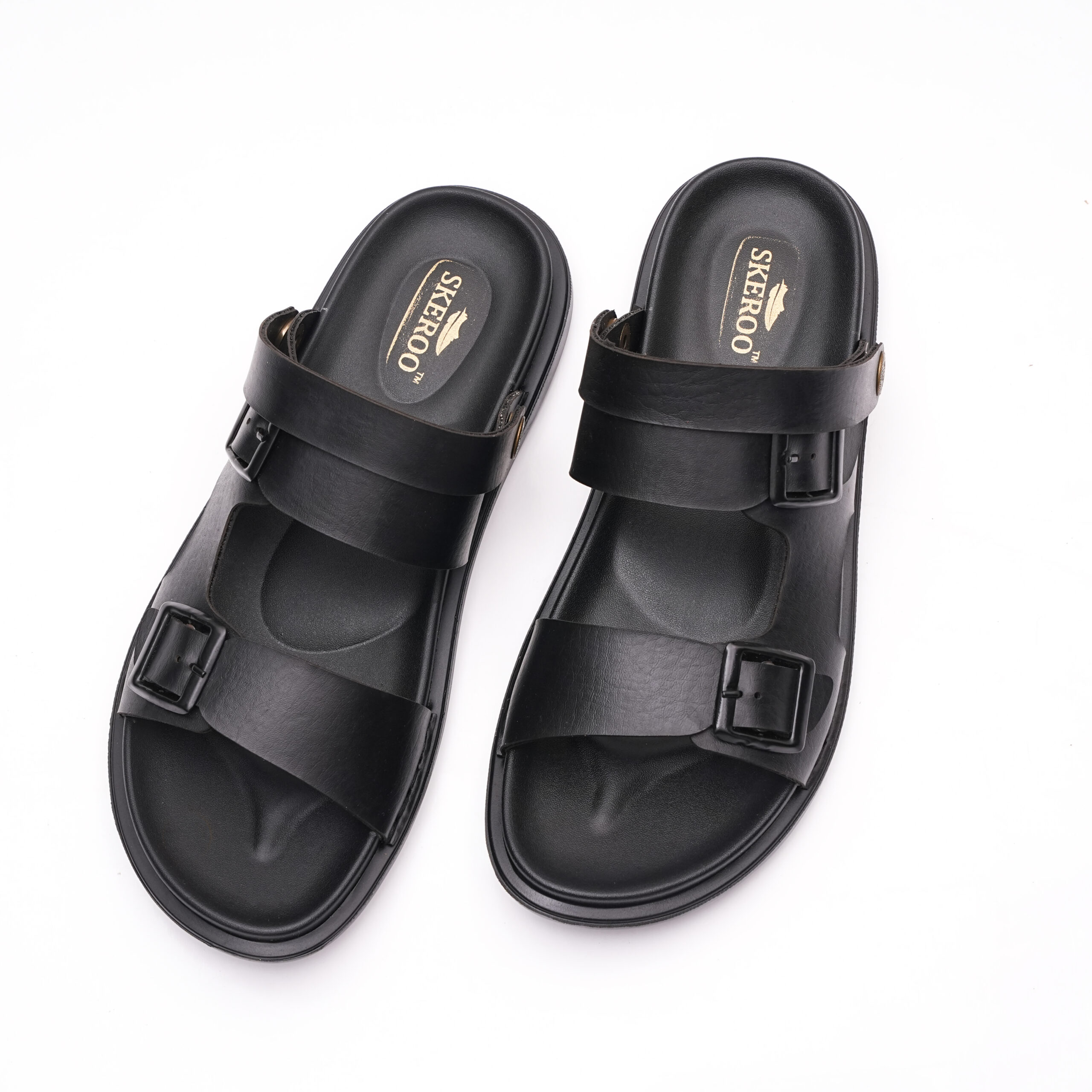 Redefine everyday footwear with the Skeroo 5007 BLACK Sandals. Designed with a sleek all-black finish, these sandals combine premium synthetic leather straps with dual adjustable buckles for a modern, customized fit. The contoured cushioned footbed ensures lasting comfort, while the durable anti-slip sole offers reliable grip with every step.